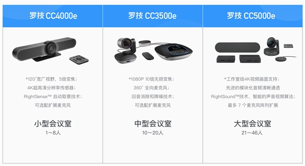 對(duì)于5至8人的會(huì)議室,Logitech CC4000e超高清攝像機(jī)視頻會(huì)議主機(jī)通過(guò)緊湊的音頻和視頻集成設(shè)計(jì),大大節(jié)省了室內(nèi)空間。 內(nèi)置的三個(gè)麥克風(fēng)可在一個(gè)小房間內(nèi)提供高保真聲音,完全恢復(fù)了會(huì)議中的每個(gè)細(xì)節(jié)。 對(duì)于10至20人的中型會(huì)議室,攝像頭和拾音器是分開(kāi)設(shè)計(jì)的,在確保近端拾音效果的同時(shí),還可以確保攝像頭角度的靈活性。 此外,該解決方案還增加了回聲消除和降噪技術(shù),以防止會(huì)議室出現(xiàn)回聲問(wèn)題。 大型會(huì)議室可容納21人,配備4K超高清攝像機(jī),揚(yáng)聲器,麥克風(fēng),臺(tái)式機(jī)集線器,顯示集線器和內(nèi)置的Logitech Right SenseTM技術(shù),可智能地優(yōu)化燈光和聲音,以滿(mǎn)足復(fù)雜的視頻會(huì)議環(huán)境。 截至2019年6月30日,已有超過(guò)1000萬(wàn)個(gè)企業(yè)組織和2億用戶(hù)在使用它。 軟硬件的結(jié)合已成為許多組織邁向數(shù)字化未來(lái)的最短途徑。
